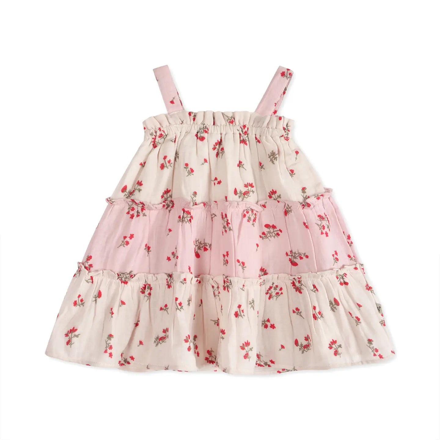 All-season tiered baby dress and bloomer set made from ultra-soft, breathable 100% organic cotton for all-day comfort.