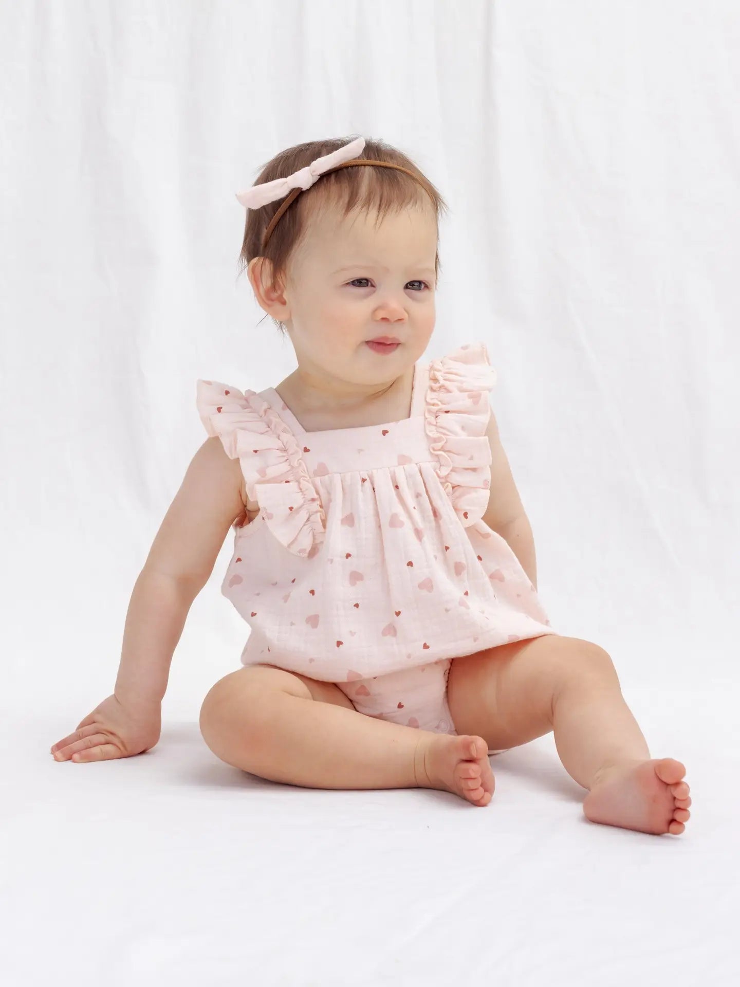 The Maya Romper is the perfect spring outfit, combining charming details with everyday comfort. Designed with ruffled scalloped sleeves and delicate embroidered accents, this romper offers a timeless, sweet look. Three back buttons and bottom snap closures make dressing and diaper changes quick and easy.