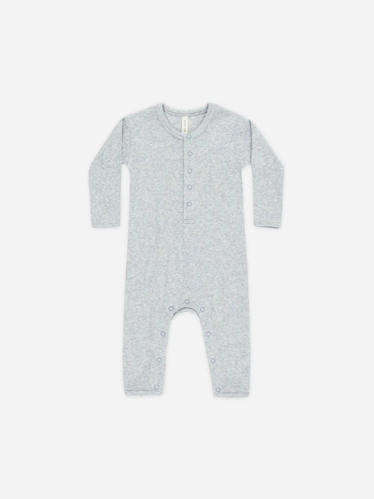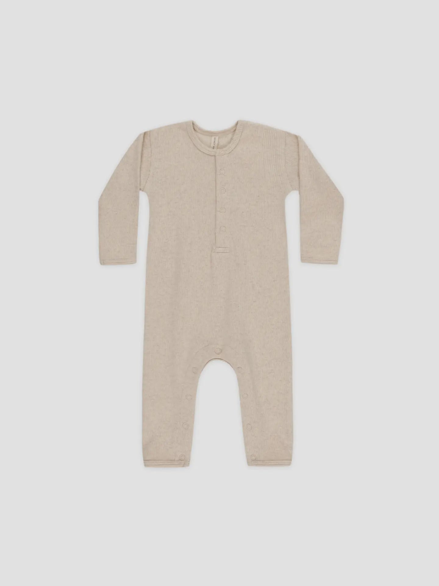 Keep your baby comfy and stylish in our slim-fit rib knit jumpsuit, designed with just the right amount of stretch to grow with your little one. Thoughtfully made with front snaps and inseam snaps (sizes 0–3M to 18–24M) for quick and easy diaper changes.