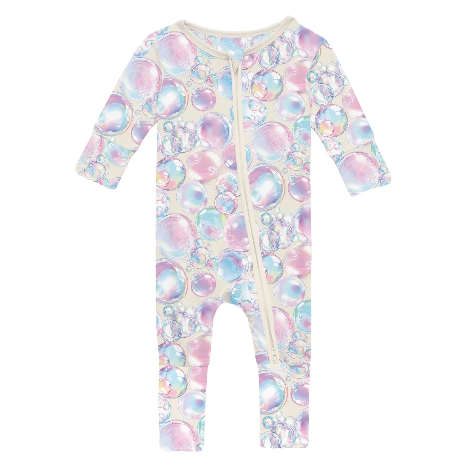 Get ready for cozy and convenient nights with our Print Muffin Ruffle Footie. Crafted from buttery-soft, hypoallergenic bamboo fabric, this snug-fitting footie now features a YKK zipper for easy changes. Plus, it's moisture-wicking, UPF 50+ and has a tag-free label for extra comfort. Perfect for those midnight diaper changes!